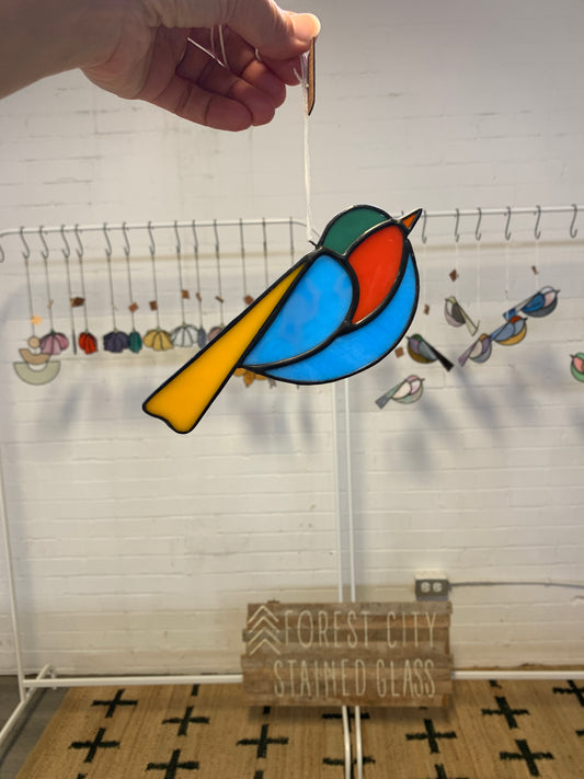 Colorful Bird Friend • Blue, Yellow, Burnt Orange, Teal