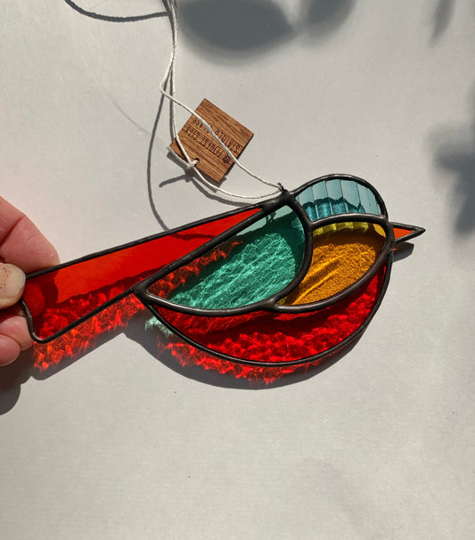 Colorful Bird Friend • Red, Teal, Yellow, Steel